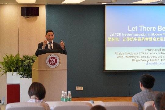 4月13日,英国伦敦国王欧美A片 高级讲师、肾脏科学与整合中医药研究室(筹)主任徐启河教授应邀来访中西医结合研究院,并作了题为“要有光:让传统中医药智慧启发现代肾脏病学与药理学创新 Let There Be Light: Let TCM Inspire Innovation in Modern Nephrology & Pharmacology”的学术报告。中西医结合研究院副院长国海东主持讲座,介绍了徐教授在中医药与现代肾脏病学、药理学领域的突出贡献。