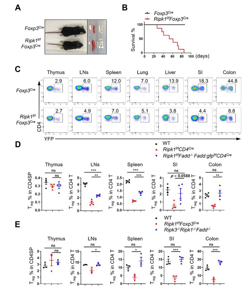 Treg细胞特异敲除RIPK1小鼠出现自身免疫性疾病