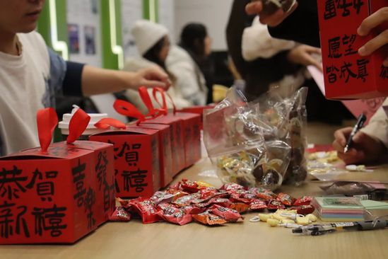 参与度最高的活动莫过于“手作盲盒,互赠吉礼”了。师生们亲手制作一份独一无二的盲盒,将自己对2025年的美好祝福留在其中,并期待着从另一个盲盒中收获他人的惊喜。这种互赠礼物、传递心意的方式,不仅增进了彼此之间的友谊,更让现场充满了温馨与感动。