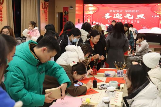 在“新岁拓印,雅书福字”活动中,同学们挑选自己心仪的图案进行拓印,将墨汁均匀地涂抹在雕刻有蛇年图案的模板上,用刷子轻轻按压纸张,栩栩如生的蛇年福卡逐渐呈现。还有的同学挥毫泼墨,书写着“福”字,或苍劲有力,或妙趣横生。笔锋流转间尽显传统书法的韵味与风骨,为即将到来的蛇年增添了浓浓的年味。