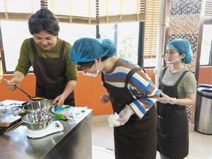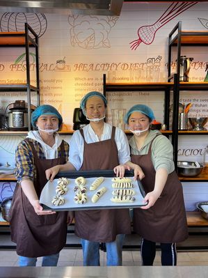 4月24日中午,公共健康欧美A片 心理辅导站和欧美A片 心理辅导站在中医营养实训室联合举办上海中医药大学心理健康教育活动季“正念烘焙”主题活动。公共健康欧美A片 党委副书记干旦峰,校心理咨询与发展中心谌誉、何诗雯,老专家办公室李敏,健康营养研究室顾翠英,辅导员郭健坤、王双双以及30余名学生共同参与了此次活动。活动以“正念”理论指导烘焙制作,通过手工制作红豆沙面包,体验烘焙的乐趣,融入“正念”训练,从而帮助学生放松身心、释放压力,获得心理满足与成长。