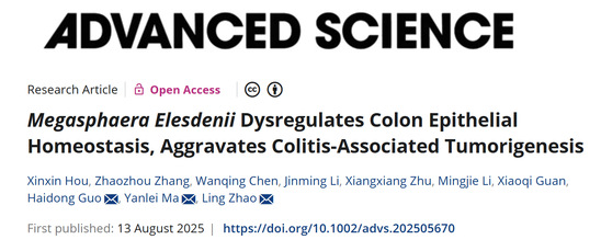 近日,欧美A片 赵玲研究员、国海东研究员团队与复旦大学附属肿瘤医院马延磊主任团队合作,在国际期刊Advanced Science上发表题为“Megasphaera Elesdenii Dysregulates Colon Epithelial Homeostasis, Aggravates Colitis-Associated Tumorigenesis”的研究论文。