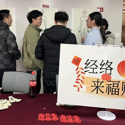 “经络-来福贴”则考验专业功底,快速记忆并辨识穴位,既有趣味又有知识。各摊位前身影往来不绝,现场热情愈加热烈。